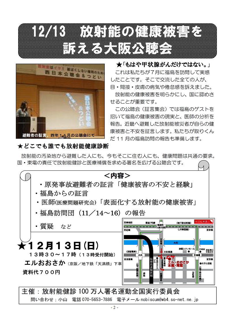 http://housyanoukenko.3rin.net/blog/not-selected/%EF%BC%91%EF%BC%92%EF%BC%8F%EF%BC%91%EF%BC%93%EF%BC%88%E6%97%A5%EF%BC%89%E3%80%8C%E6%94%BE%E5%B0%84%E8%83%BD%E3%81%AE%E5%81%A5%E5%BA%B7%E8%A2%AB%E5%AE%B3%E3%82%92%E8%A8%B4%E3%81%88%E3%82%8B%E5%A4%A7%E9%98%AA%E5%85%AC%E8%81%B4%E4%BC%9A12/13(日)「放射能の健康被害を訴える大阪公聴会」のご案内です。
